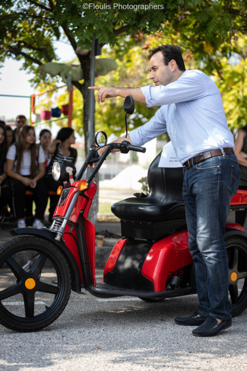 Τα οχήματα αυτά παρουσιάστηκαν σε μαθητές/τριες του 4ου Γυμνασίου Τρικάλων, οι οποίοι άκουσαν τον Δήμαρχο να επιμένει στη χρήση του ποδηλάτου, να τονίζει τη σημασία της διερεύνησης νέων τρόπων για τη βιώσιμη κινητικότητα και να αναφέρεται στις μέχρι τώρα δράσεις του Δήμου για το ποδήλατο και τους πεζούς.