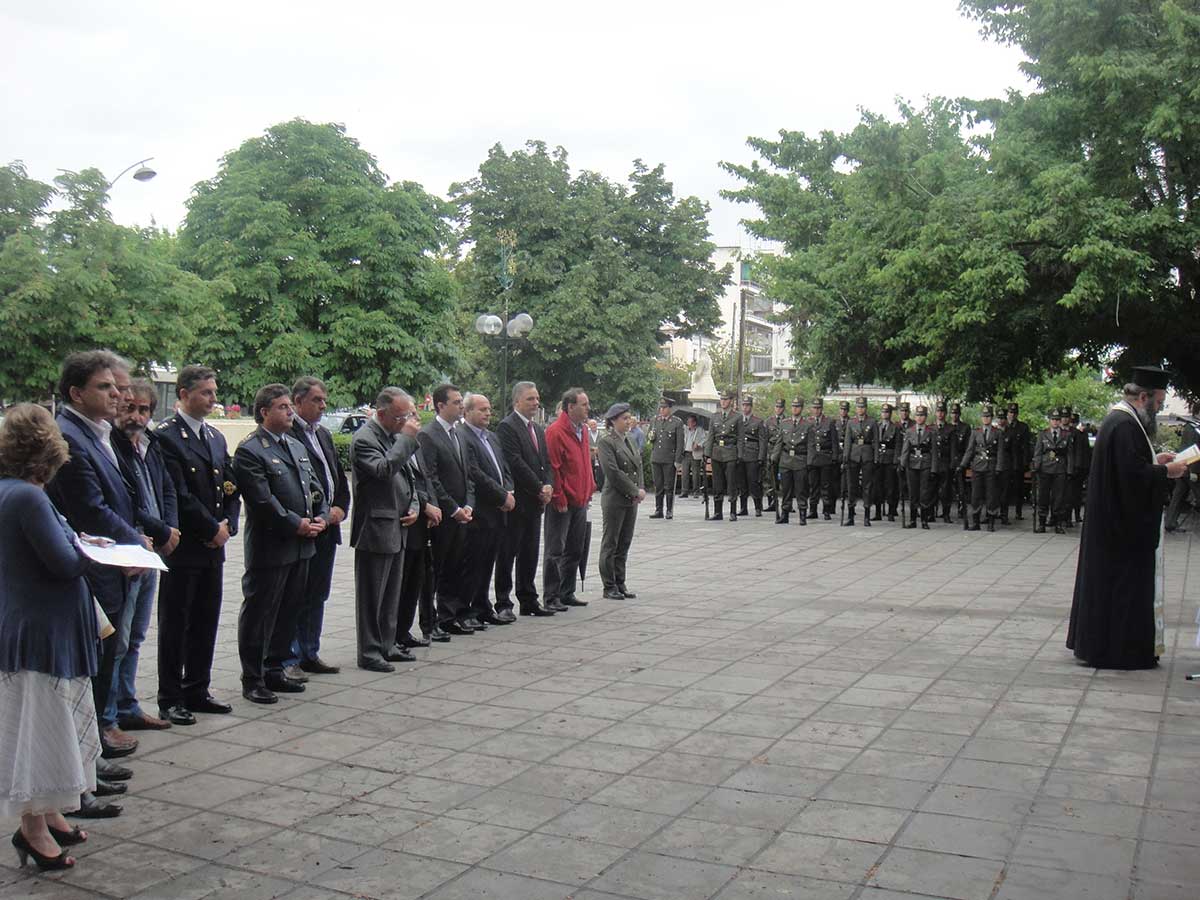 Ώρα 11:00 – Επιμνημόσυνη δέηση και ομιλία για την αντιφασιστική νίκη των λαών, από τη φιλόλογο-θεατρολόγο κα. Αθανασία Τσιοτινού. Κατάθεση στεφάνων εκπροσώπων όλων των οργανώσεων, οι οποίες έλαβαν ενεργά μέρος στον αγώνα και την αντίσταση κατά των δυνάμεων κατοχής, στον Ανδριάντα του Στρατηγού Σαράφη στην Κεντρική Πλατεία.