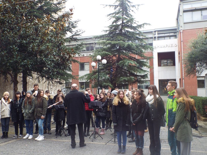 Κάλαντα και ευχές στο Δημαρχείο Τρικκαίων. Από το πρωί της Παρασκευής, η γιορτινή ατμόσφαιρα εμπλουτιζόταν από τα κάλαντα και τα γιορτινά τραγούδια που έψελναν και τραγουδούσαν στον Δήμαρχο Τρικκαίων. Το πρωί, μαθητές από το Μουσικό Σχολείο Τρικάλων μπροστά στο Δημαρχείο τραγούδησαν χριστουγεννιάτικα τραγούδια. Παρέστησαν οι αντιδήμαρχοι κ.κ. Δήμα, Λεβέντη, Αυγέρου – Κογιάννη, Ψύχος και ο τ. αντιδήμαρχος κ. Αναστασίου. Λίγο αργότερα, στο γραφείο του Δημάρχου Τρικακίων, το 23ο σύστημα προσκόπων Τρικάλων, καθώς και μαθητές από το ΚΔΔΑΠ Σταθμός, συνοδευόμενοι από τους αρχηγούς τους και τους εκπαιδευτικούς αντιστοίχως, έψαλαν κάλαντα από περιοχές της Ελλάδας. Ο κ. Δημήτρης Παπαστεργίου αντευχήθηκε για τις ημέρες των εορτών, με κεράσματα και ευχές για υγεία σε όλους.