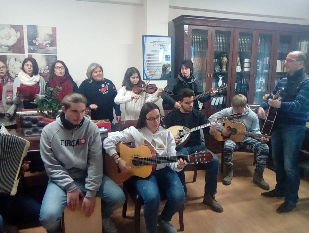 Μαθητές της B και A τάξης του 3ου ΓΕΛ Τρικάλων με τους καθηγητές τους κ. Δημήτριο Λάσκο και κα Λαμπρινή Σταμάτη επισκέφτηκαν σήμερα 21/12/2017 τα γραφεία της Διεύθυνσης Δευτεροβάθμιας Εκπαίδευσης Τρικάλων, ευχήθηκαν και τραγούδησαν στη Διευθύντρια κα Βασιλική Κάκλα και το προσωπικό της Δ.Δ.Ε. τα κάλαντα των Χριστουγέννων. Οι μαθητές του σχολείου τραγούδησαν συνοδεία μουσικής Ικαριώτικα, Μοραΐτικα, Θρακιώτικα, αλλά και τοπικά κάλαντα από την περιοχή της Θεσσαλίας.