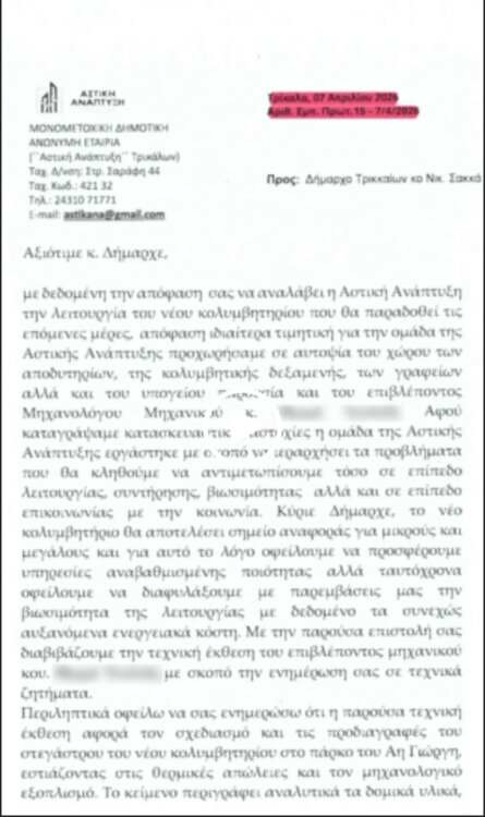 Μια επιστολή του προέδρου της Αστικής Ανάπτυξης και ένα βίντεο του επικεφαλή της αντιπολίτευσης Γιώργου Ηλιάδη, κάνουν… ρεζίλι τον δήμαρχο Τρικκαίων και τις Τεχνικές Υπηρεσίες του δήμου σχετικά με τον… λειτουργία της πισίνας στον Αη Γιώργη… που μάλλον πάει από… τον ερχόμενο χειμώνα…