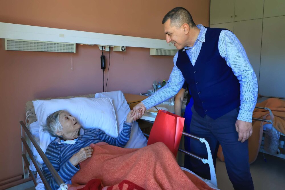 Ακολούθως, ο Περιφερειάρχης επισκέφθηκε το Γηροκομείο Τρικάλων, το οποίο λειτουργεί υπό την αιγίδα της Ιεράς Μητροπόλεως. Μαζί με τον Σεβασμιότατο Μητροπολίτη Τρίκκης Χρυσόστομο, συναντήθηκε με τους ηλικιωμένους που φιλοξενούνται εκεί, άκουσε τις προσωπικές τους ιστορίες, μοίρασε δώρα  και  αντάλλαξε ευχές.