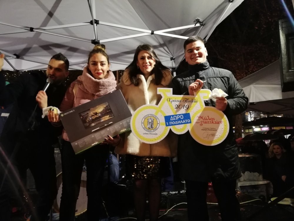 Τέσσερις τυχεροί κέρδισαν δώρα που εξασφάλισε η e-trikala: 3 ποδήλατα, ένα Playstation και ένα smartphone (το συγκεκριμένο δωρεά του καταστήματος «Γερμανός»). Ακολούθησε μια ακόμη κλήρωση, από τον Εμπορικό Σύλλογο Τρικάλων, με δώρο ένα ταξίδι στο Λονδίνο, καθώς, όπως ανέφερε ο πρόεδρός του κ. Χρήστος Μπλουγούρας, είναι το αντίδωρο των τρικαλινών εμπόρων στην ανταπόκριση των καταναλωτών από όλη τη χώρα και στην προτίμησή τους στην τοπική αγορά.