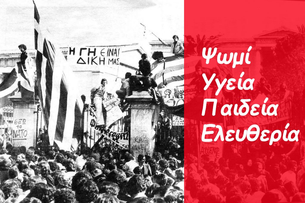 Οι φετινές εκδηλώσεις του Πολυτεχνείου δεν είναι –και ποτέ δεν ήταν– επετειακές εκδηλώσεις μνήμης. Σήμερα, περισσότερο από κάθε άλλη φορά, θα πρέπει να είναι μαζικές εκδηλώσεις καταδίκης μιας πολιτικής που σκορπά την εξαθλίωση, τον απάνθρωπο αυταρχισμό και τον θάνατο.