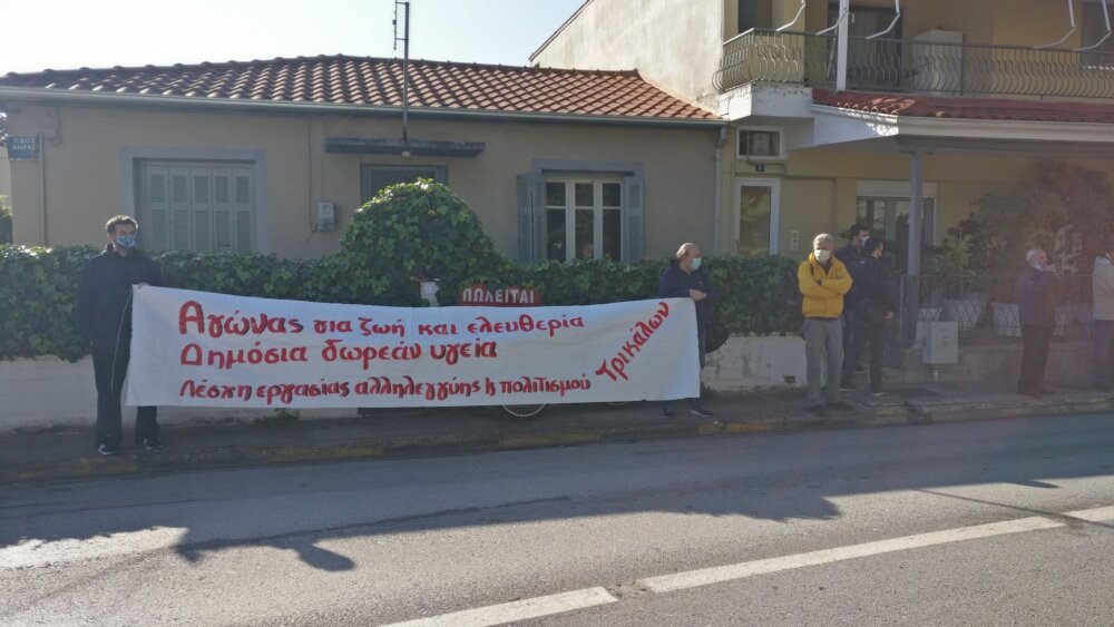 Εικόνα 3η: Τρίκαλα 26/11/2020. Μετά από ανακοίνωση πολιτικών και κοινωνικών φορέων για την απεργιακή συγκέντρωση έξω από το Γενικό Νοσοκομείο Τρικάλων, πηγαίνουν 50 άτομα περίπου. Σε όλους τους παράπλευρους δρόμους βρίσκονται δεκάδες αστυνομικοί, «για λόγους προστασίας της δημόσιας υγείας και μόνο…» από τον συγχρωτισμό εξαιτίας της πανδημίας.