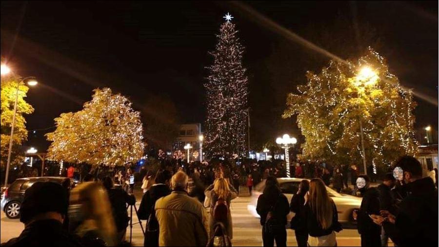 Εικόνα 4η: Τρίκαλα 27/11/2020. Μετά από ανακοίνωση του Δήμου Τρικκαίων για τη φωταγώγηση του χριστουγεννιάτικου δέντρου στην κεντρική πλατεία, πηγαίνουν εκατοντάδες άτομα. Σε όλο το κέντρο της πόλης δε βρίσκεται ούτε ένας αστυνομικός, «για λόγους προστασίας της δημόσιας υγείας και μόνο…» από τον συγχρωτισμό, εξαιτίας της πανδημίας.