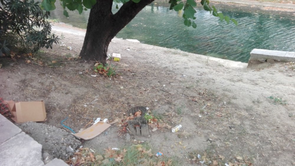 Πιο κέντρο δεν γίνεται… Δίπλα στο άγαλμα του Ασκληπιού και λίγο μετά το λιμανάκι…αντι για βαρκούλες, αρμενίζουν σακούλες σκουπιδιών και μπουκάλια με τον Ληθαίο να δείχνει το πιο βρόμικο ποτάμι της χώρας…