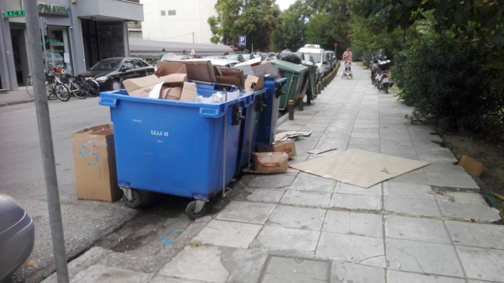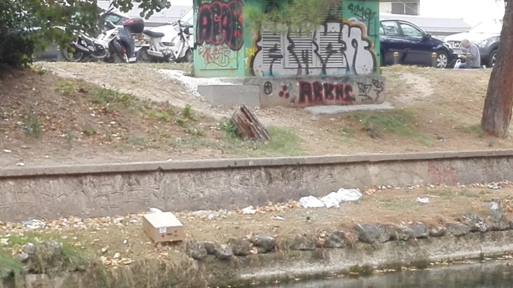 Χαρτοκιβώτια από τους κάδους απορριμμάτων που έχουν γεμίσει από τα διπλανά καταστήματα και που κανένας δεν πέρασε να πάρει, μπουκάλια και σακούλες δίπλα στις όχθες και μέσα στο ποτάμι… που σίγουρα δεν δημιουργήθηκαν από χθες βράδυ μέχρι σήμερα…