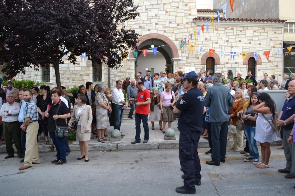 Το Σάββατο βράδυ στον ομώνυμο Ιερό Ναό, έγινε η υποδοχή της Τιμίας Κάρας του Αγίου μεταφερόμενη από την Ιερά Μονή Δουσίκου και τελέστηκε Μέγας Αρχιερατικός Εσπερινός χοροστατούντος του Σεβασμιωτάτου Μητροπολίτου Λαγκαδά κ. Ιωάννου και με την συμμετοχή των Σεβασμιωτάτων Μητροπολιτών Διδυμοτείχου κ. Δαμασκηνού, Θεσσαλιώτιδος και Φαναριοφερσάλων κ. Τιμοθέου, Τρίκκης και Σταγών κ. Χρυσοστόμου και του Τρικαλινής καταγωγής Επισκόπου Στρατωνικείας κ. Στεφάνου.