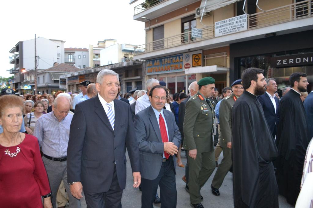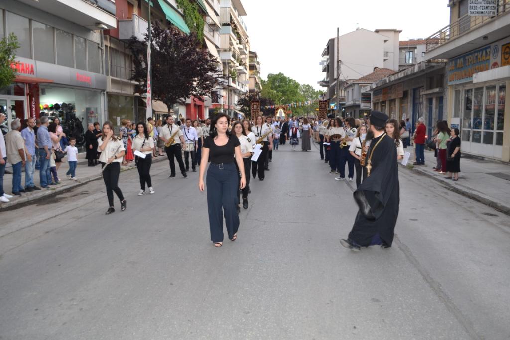 Ακολούθησε Λιτανεία της Τιμίας Κάρας του Αγίου προς την κεντρική πλατεία με πλήθος Ιερέων και πιστών να ακολουθούν την Τιμία Κάρα και την Ιερά Εικόνα του Αγίου που συνόδευε άγημα της ΣΜΥ ενώ τον τόνο έδινε η Φιλαρμονική του Δήμου και η μπάντα του Στρατού.