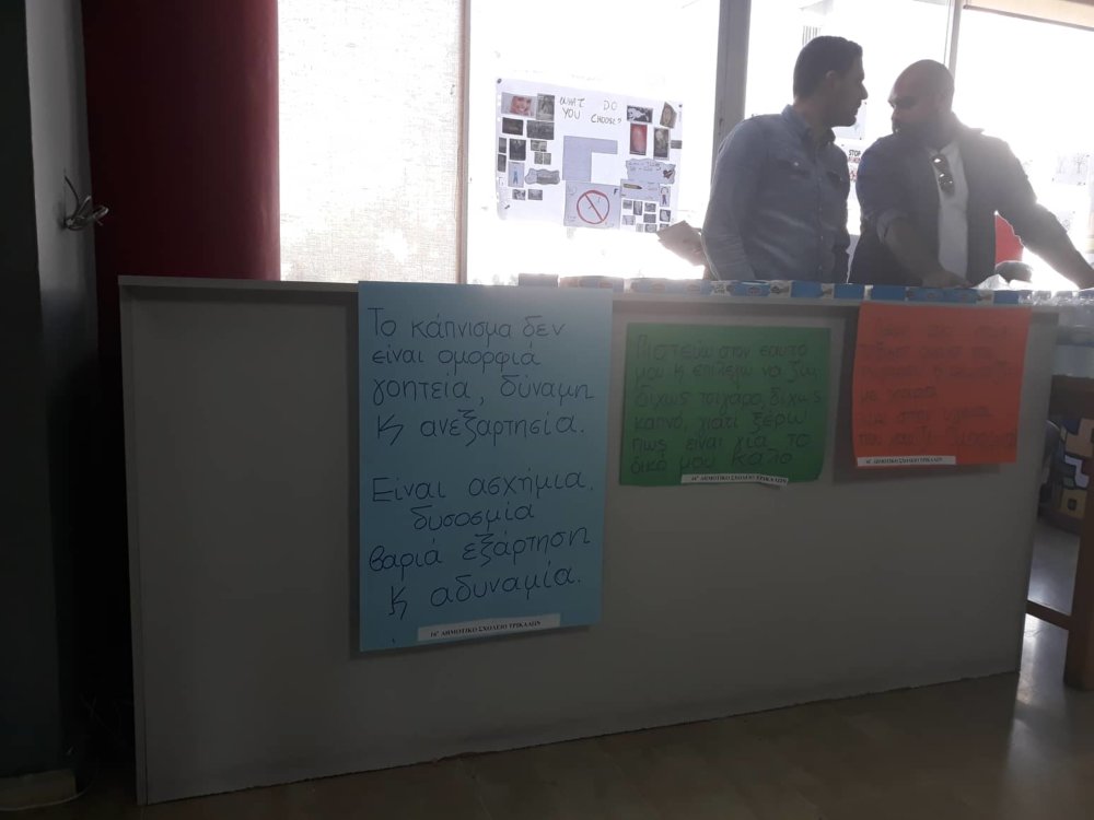 Η αίθουσα «Δημήτρης Καβράκος» του Πνευματικού Κέντρου Τρικάλων «Αθανάσιος Τριγώνης» ήταν κατάμεστη από μαθητές σχολείων των Τρικάλων που, ακολουθώντας το παράδειγμα του 5ου Γυμνασίου Τρικάλων από το 2016, μετείχαν σε προγράμματα – παραστάσεις – παρουσιάσεις ενάντια στο κάπνισμα.