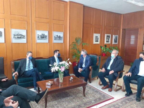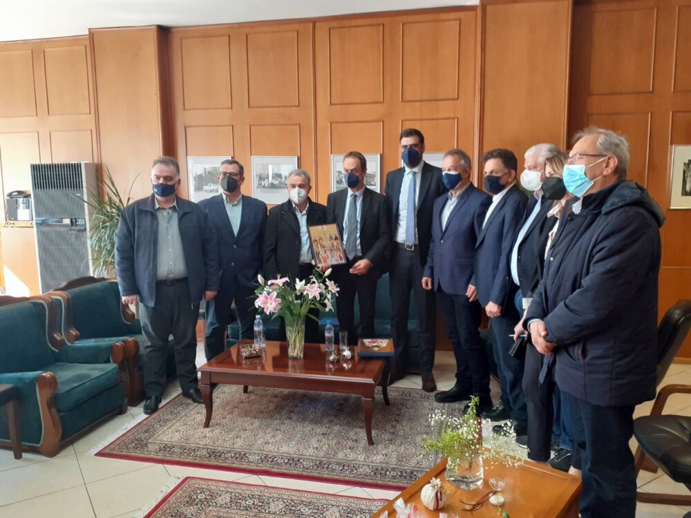 Ο Χρήστος Μιχαλάκης χάρισε στον νέο γραμματέα της Ν.Δ. μια εικόνα, ενώ η σύντομη κουβέντα περιστράφηκε στο έργο της Περιφέρειας Θεσσαλίας.