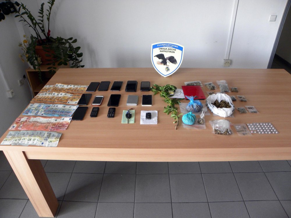 Σε νομότυπες έρευνες που διενεργήθηκαν στις οικίες των συλληφθέντων, βρέθηκαν με τη συνδρομή αστυνομικών σκύλων και κατασχέθηκαν: