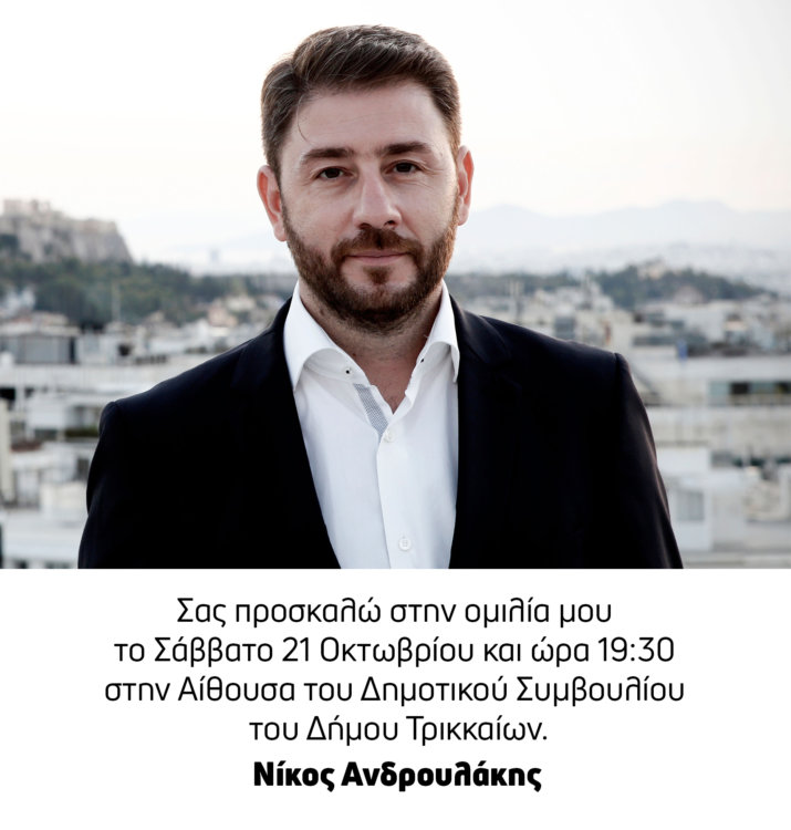 Ο Νίκος Ανδρουλάκης παίρνει τη σκυτάλη των υποψηφίων της κεντροαριστεράς που θα επισκεφθούν τα Τρίκαλα.