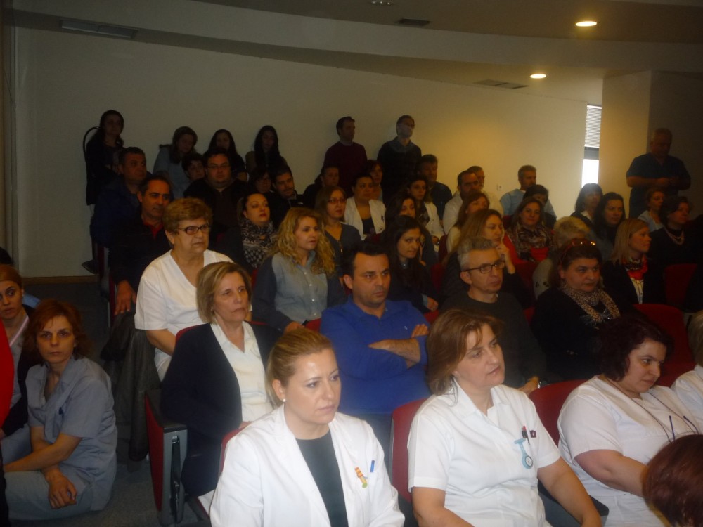 Με την ευχή η χρονιά που διανύουμε να είναι καλύτερη για τη δημόσια Υγεία, τόσο σε επίπεδο παροχής υπηρεσιών προς στους πολίτες, όσο και σε κλαδικό επίπεδο, σήμερα το μεσημέρι ο Σύλλογος Νοσοκομειακών Υπαλλήλων Τρικάλων έκοψε την πίτα του. Η εκδήλωση έλαβε χώρα στο αμφιθέατρο του Γενικού Νοσοκομείου Τρικάλων, παρουσία της Διοίκησης του τοπικού νοσηλευτηρίου, τοπικών φορέων, καθώς και του ιατρικού και νοσηλευτικού προσωπικού. Στις δυσκολίες της χρονιάς που έφυγε στάθηκε ο πρόεδρος του Συλλόγου Εργαζομένων του τοπικού νοσηλευτικού ιδρύματος κ. Κώστας Ντόβας.