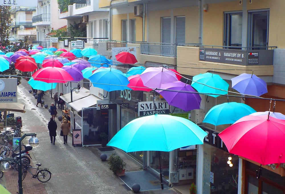 Μόνο που πριν λίγους μήνες στη γειτονική Καρδίτσα που πρωτοπόρησε πανελλαδικά… είχαμε το ίδιο θέαμα και μάλιστα με προσωπική τους πρωτοβουλία και έξοδα των ίδιων των καταστηματαρχών τοποθετήθηκαν κατά μήκος του πεζόδρομου αιωρούμενες ομπρέλες διαφόρων χρωμάτων που το βράδυ φωτίζονται και έχουν εντυπωσιάσει τους περαστικούς.