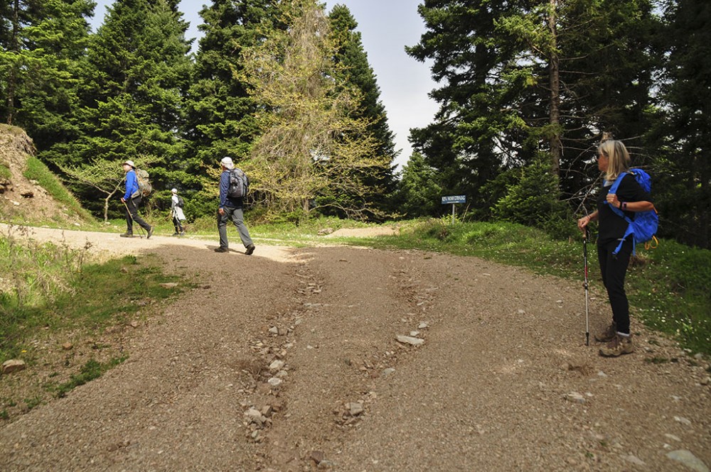 Ο χωματόδρομος κατευθύνεται προς τα Κέδρα Ευρυτανίας που περνά τις κατάφυτες πλαγιές από το τις δυο γνωστές μας κορυφές «Γαλάτσι» και Ψηλοράχη». Μετά από πορεία δυο περίπου ωρών βγαίνουμε σε αυχένα που γυρίζει προς την πορεία που θα κάνουμε.