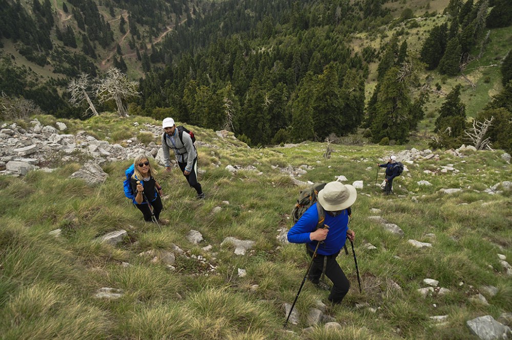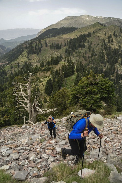 Σιγά-σιγά και με μεγάλη προσοχή ανηφορίζουμε με μεγάλο κόπο, πότε κρατημένοι από τις μεγάλες πλακαριές που ήταν χωμένες στο λιγοστό χώμα και πότε από τις μικρές πρασινάδες που ακόμα δεν ξεχώρισαν από τον βαρύ χειμώνα. Εκεί θυμηθήκαμε το γνωστό γνωμικό: «έρποντας και γλείφοντας φτάνει κανείς ψηλά». Μόνο που εμείς, η μικρή ομάδα, χωρίς τον εγωισμό και μόνο με τη θέληση για την κορυφή σιγά-σιγά ανηφορίζαμε κερδίζοντας μέτρο – μέτρο την ανηφόρα ως την ομαλότερη ράχη.