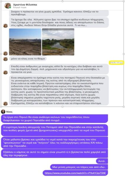 Στην φωτογραφία που προσκομίζω και που δημιουργήθηκε με την μέθοδο «αποκόμματος» έχει ημερομηνία 6.6.2020 (διακρίνεται στο δεξί κίτρινο πλαίσιο) , δηλαδή την ημέρα που μου κατήγγειλε το «έγκλημα» του Πηνειού που θα εκτελούσε η Περιφέρεια Θεσσαλίας , εναντίον της οποίας στράφηκε ως πρόεδρος της διοίκησης του Συλλόγου «Φίλοι των ρεμάτων-Ροή» με έδρα την Αθήνα . Όπως εξάλλου έπραξε την 1η Απριλίου 2021 με σχετικό εξώδικο εναντίον της δημοτικής αρχής Τρικάλων από την οποία ζητάει την διακοπή των εργασιών καθαρισμού του Αγιαμονιώτη & του Ληθαίου .