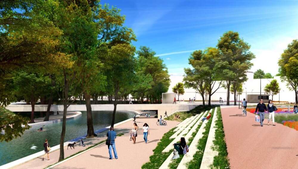 Πιο συγκεκριμένα, δεξιά και αριστερά της παραποτάμιας ζώνης γίνεται ανάπλαση των πεζοδρομίων με πλάτος 5,1μ μέσα στο οποίο περιλαμβάνεται ζώνη φύτευσης/προστασίας από 0,70μ έως 1,20μ, ποδηλατόδρομος με έγχρωμο βιομηχανικό δάπεδο πλάτους 1,50μ μονής κατεύθυνσης και ζώνη κίνησης πεζών με χυτό βοτσαλωτό δάπεδο ελάχιστου πλάτους 2,40μ . Η ανάπλαση συμπληρώνεται και ολοκληρώνεται με τη φύτευση νέων δέντρων, τη δημιουργία νέων καθιστικών καθώς και την τοποθέτηση νέων φωτιστικών και κιγκλιδωμάτων. Επίσης η οδός Κανούτα στο τμήμα από την διασταύρωση της με την οδό Χατζηγάκη έως την διασταύρωση με την οδό Γαριβάλδη μετατρέπεται σε οδό ήπιας κυκλοφορίας.