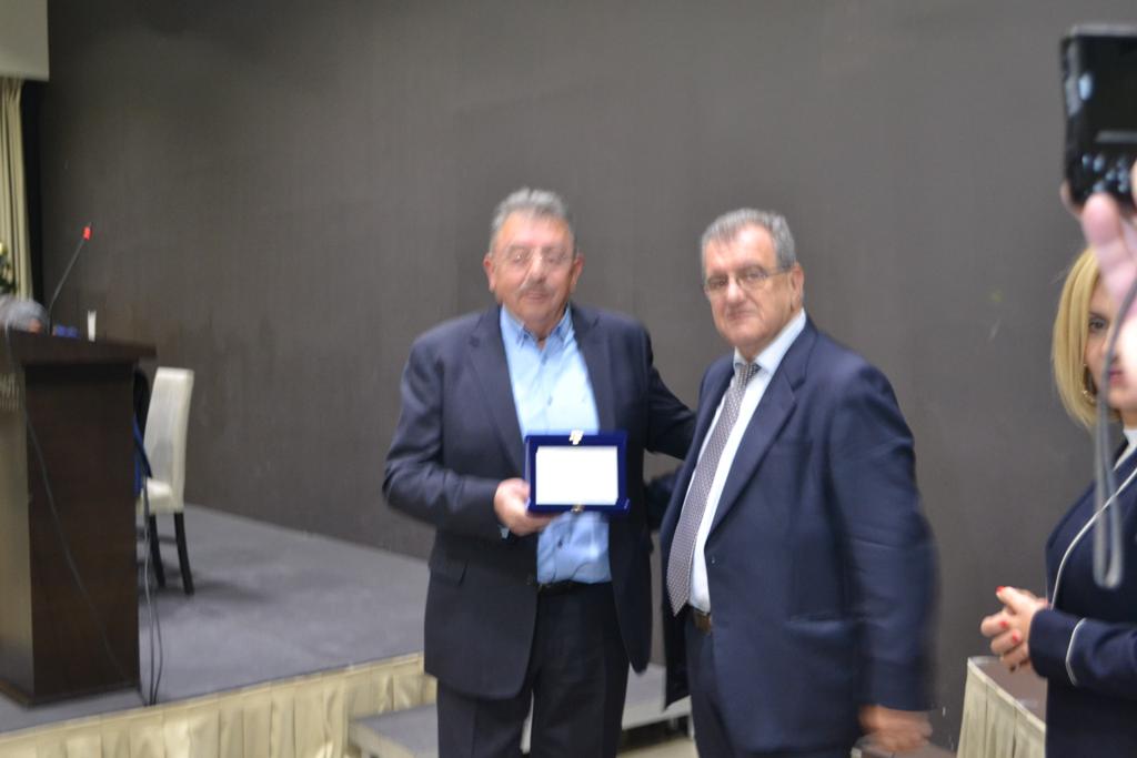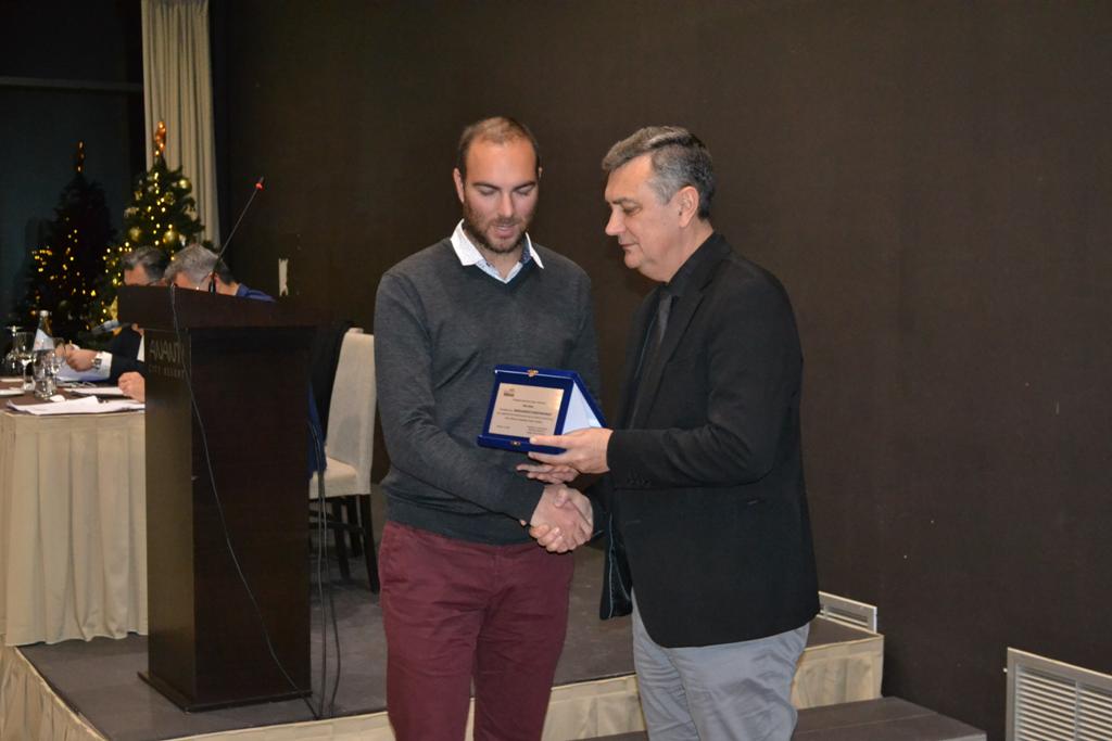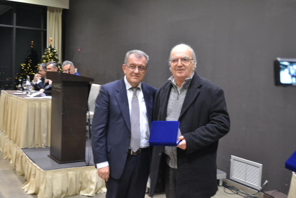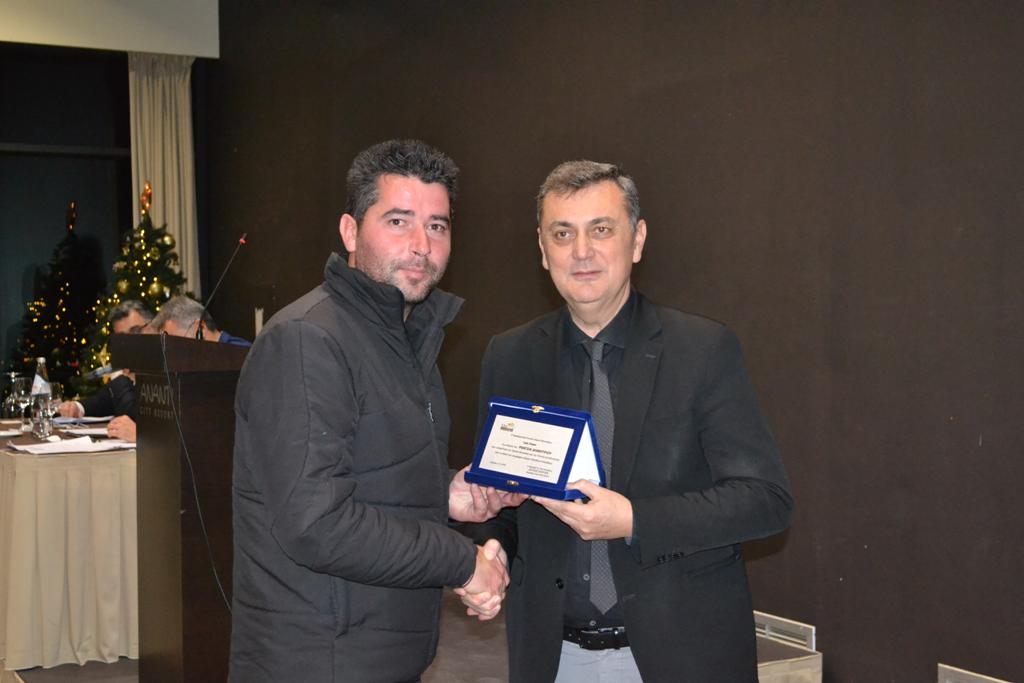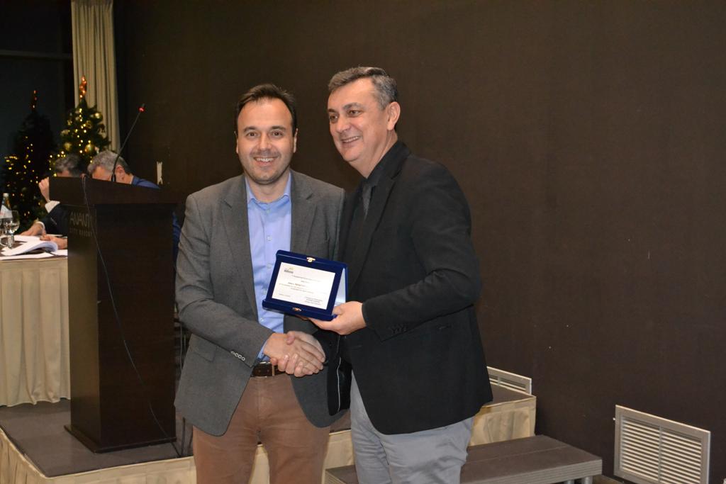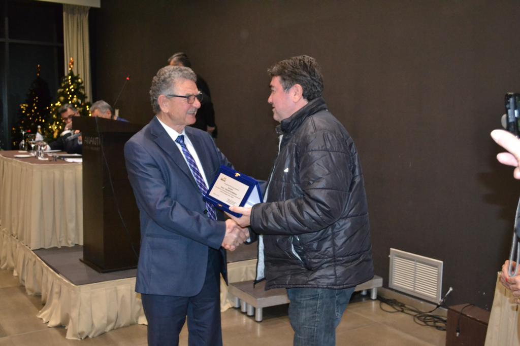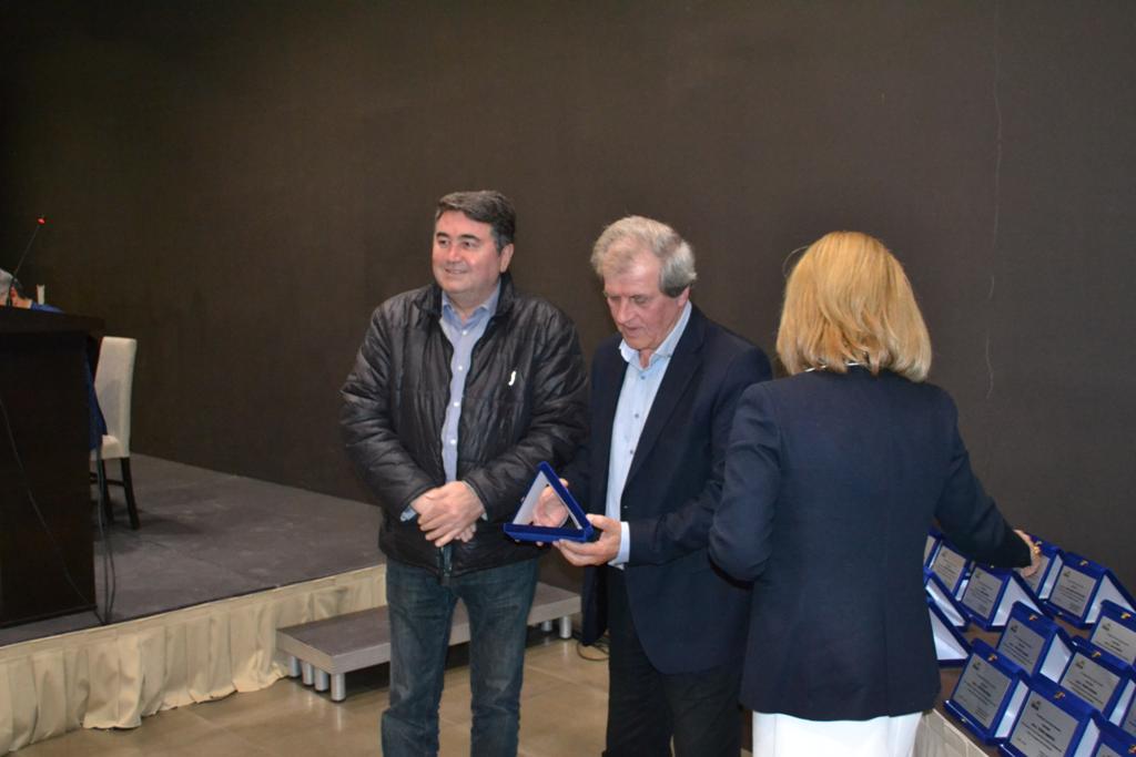 Ο Πρόεδρος της διοργανώτριας ΠΕΔ Θεσσαλίας Δήμαρχος Μουζακίου κ. Γιώργος Κωτσός, με αρκετούς εν ενεργεία Δημάρχους και εκπροσώπους τοπικών φορέων, απένειμαν τιμητικές πλακέτες στους πρωταγωνιστές της βραδιάς.
