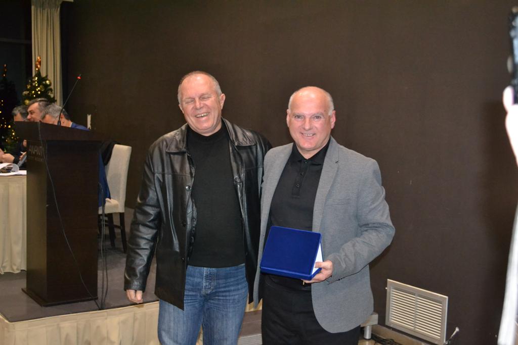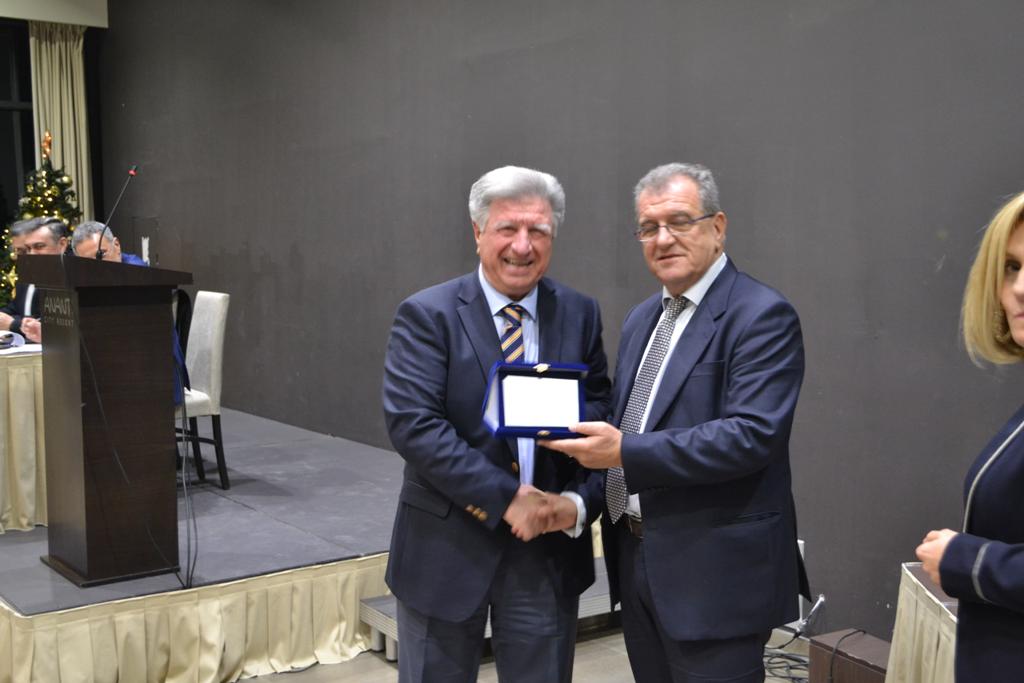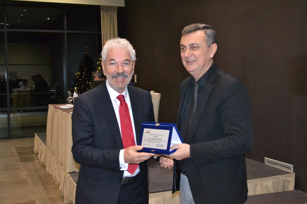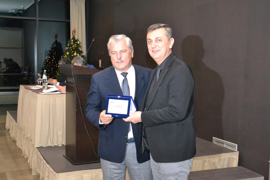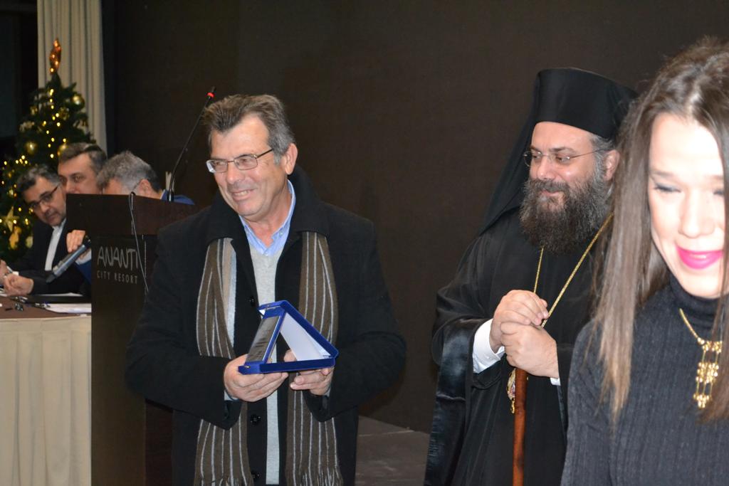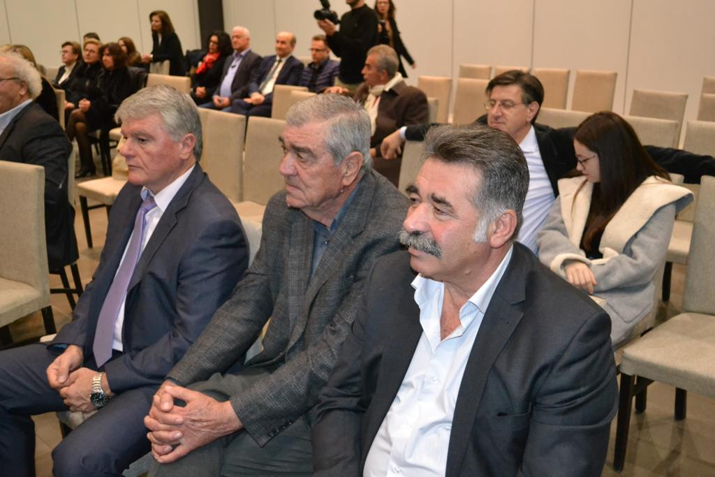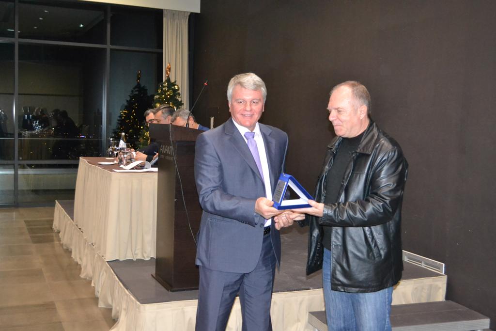 Ο Πρόεδρος της διοργανώτριας ΠΕΔ Θεσσαλίας Δήμαρχος Μουζακίου κ. Γιώργος Κωτσός, με αρκετούς εν ενεργεία Δημάρχους και εκπροσώπους τοπικών φορέων, απένειμαν τιμητικές πλακέτες στους πρωταγωνιστές της βραδιάς.