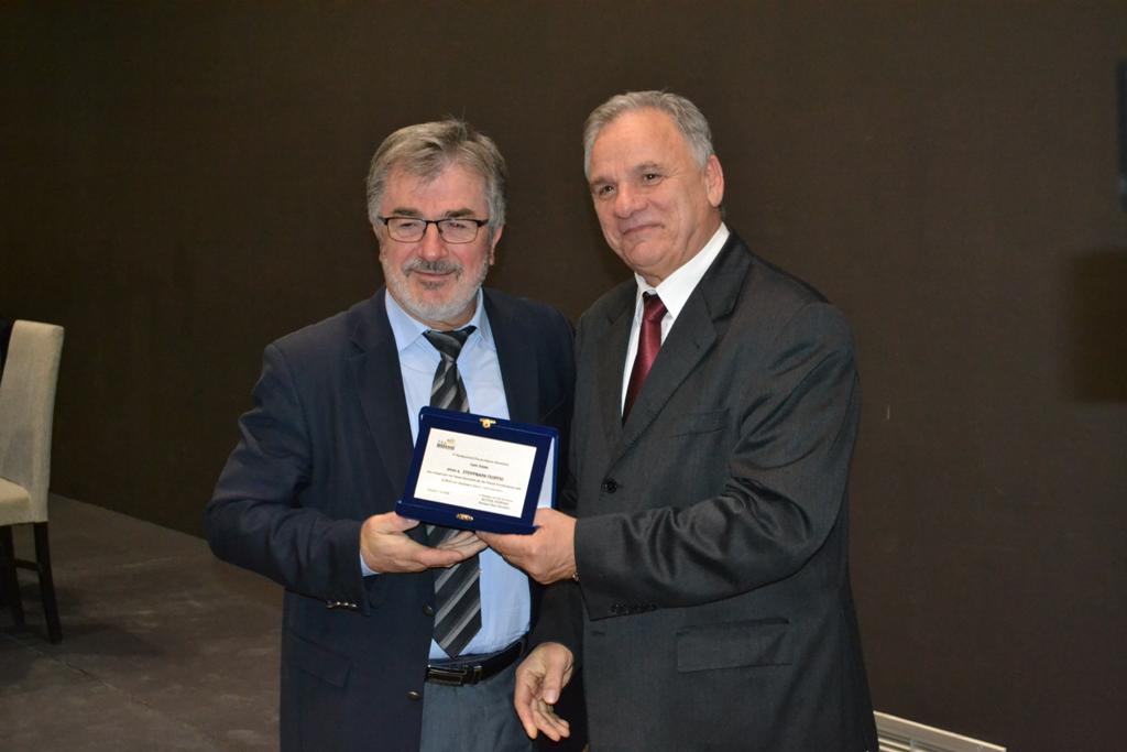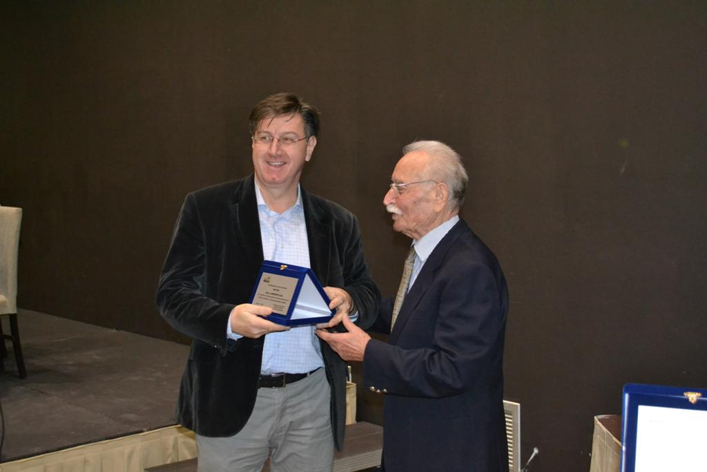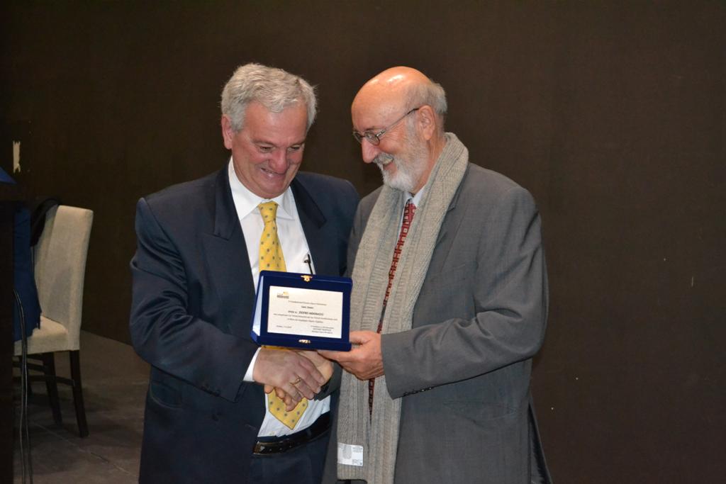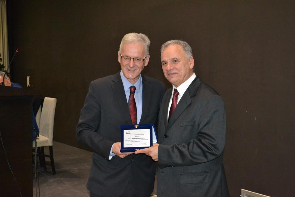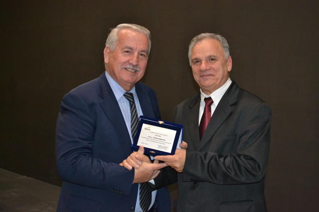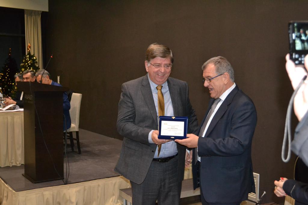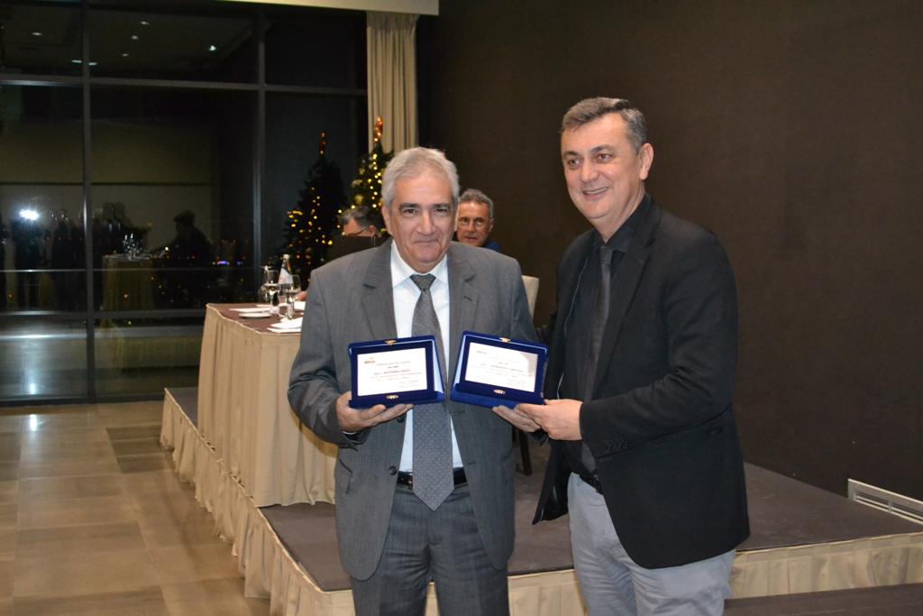Ο Πρόεδρος της διοργανώτριας ΠΕΔ Θεσσαλίας Δήμαρχος Μουζακίου κ. Γιώργος Κωτσός, με αρκετούς εν ενεργεία Δημάρχους και εκπροσώπους τοπικών φορέων, απένειμαν τιμητικές πλακέτες στους πρωταγωνιστές της βραδιάς.
