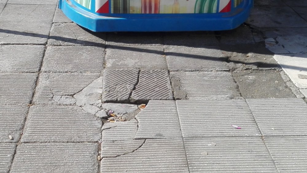 Χθες μπροστά από την «Εθνική Τράπεζα» στην κεντρική πλατεία άλλη μια κυρία σκόνταψε στο σπασμένο πλακάκι του πιο πολυσύχναστου ίσως πεζοδρομίου της πόλης.