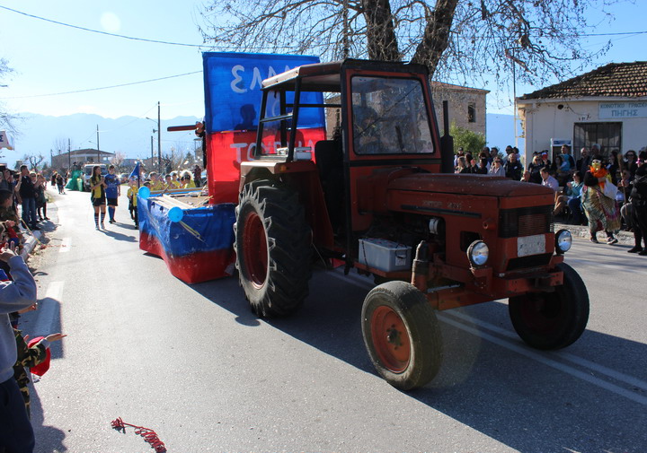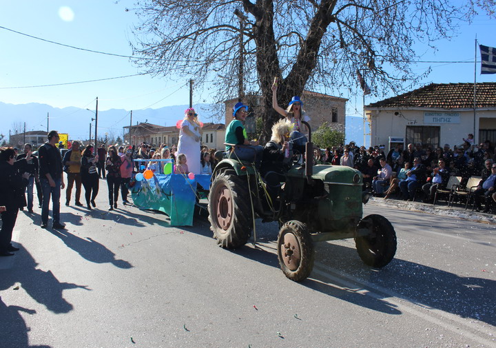 Η παρέλαση των αρμάτων έλαβε χώρα στην Κεντρική πλατεία της Πηγής την Κυριακή της Αποκριάς στις 16.00 όπου συγκεντρώθηκε αρκετός κόσμος κατά μήκος της Ε.Ο. Τρικάλων Άρτας, παρακολουθώντας τις καρναβαλικές εκδηλώσεις και την παρέλαση των οκτώ Αρμάτων με περιεχόμενο σατιρικό όπως ενδείκνυται και κατά το έθιμο τω Απόκρεω.