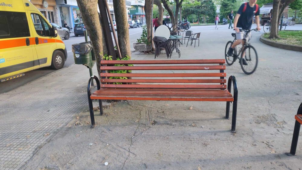 Τρέμει η ψυχούλα των ηλικιωμένων και όχι μόνο… που πάνε καθίσουν σε ένα από τα παγκάκια που βρίσκονται κάτω από το Ράδιο Ζυγός, αφού όχι απλά κουνιέται λες και είναι τραμπάλα, αλλά και οι βίδες με τις οποίες είναι στερεωμένο στην πλατεία είναι έτοιμες να φύγουν…