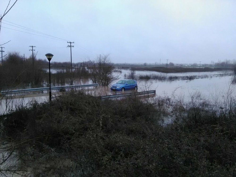 Η περιοχή όπως φαίνεται και στις φωτό, μετατράπηκε σε λίμνη με αποτέλεσμα να σβήσει το αυτοκίνητό της και να χρειαστεί βοήθεια για τον απεγκλωβισμό της.