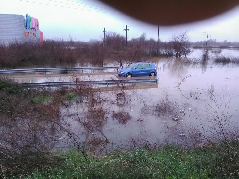 Η περιοχή όπως φαίνεται και στις φωτό, μετατράπηκε σε λίμνη με αποτέλεσμα να σβήσει το αυτοκίνητό της και να χρειαστεί βοήθεια για τον απεγκλωβισμό της.