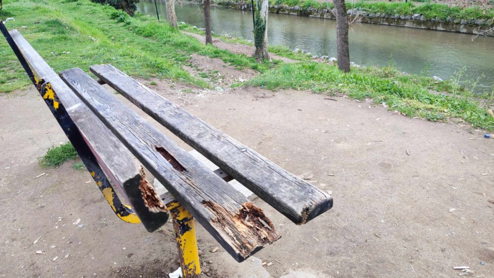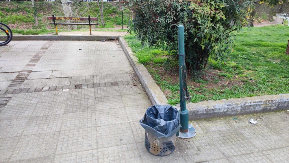 Το τσίγκινο λεωφορείο… (είναι να γελά κανείς), τα τρισάθλια περίπτερα με τα συνθήματα πάνω τους, οι πεταμένοι κουβάδες απορριμμάτων, η πλημμελής καθαριότητα (εμφανέστατη η ανεπάρκεια Παζαϊτη μετά την αποχώρηση Ρόμπου σε όλη την πόλη) αλλά και τα σάπια παγκάκια συνθέτουν το σημερινό σκηνικό…
