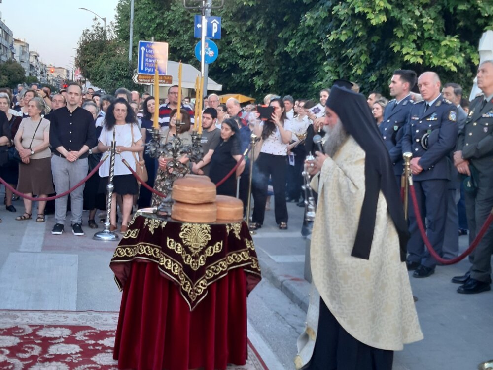 Στη συνέχεια, πραγματοποιήθηκε η Ιερά Λιτάνευση της Τιμίας Κάρας και της Ιεράς Εικόνος του Αγίου Βησσαρίωνος με κατάληξη την Κεντρική Πλατεία όπου τελέσθηκε η ακολουθία της Αρτοκλασίας και το Θείο Κήρυγμα, παρουσία των πολιτικών και στρατιωτικών αρχόντων του τόπου, καθώς και εκατοντάδων Τρικαλινών.