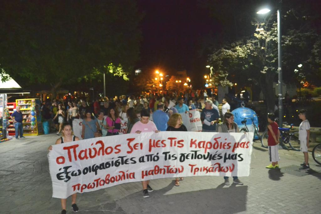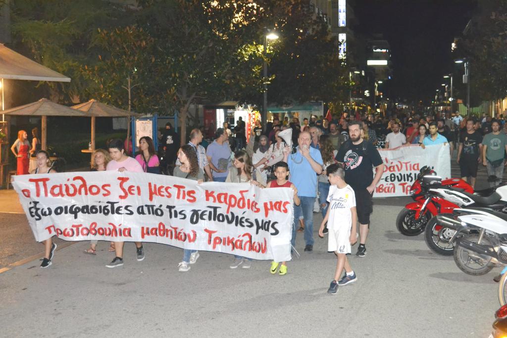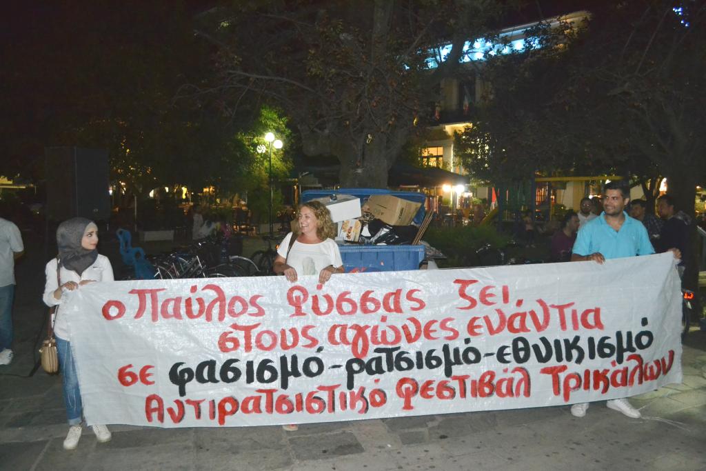 Με συνθήματα κατά του φασισμού, του ναζισμού και του ρατσισμού, αλλά και με βεγγαλικά στο ύψος της Ασκληπιού που ήταν τα γραφεία της Χρυσής Αυγής, πραγματοποιήθηκεστα Τρίκαλα πριν από λίγη ώρα, συγκέντρωση και πορεία διαμαρτυρίας για τα 5 χρόνια από τη δολοφονία του Παύλου Φύσσα.