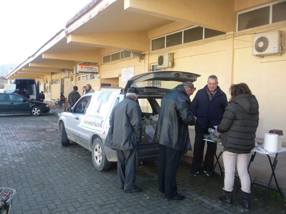 Ακόμα μια δράση «χωρίς μεσάζοντες» πραγματοποιήθηκε σήμερα το πρωί από το Δίκτυο «αλληλεγγύη για όλους». Η διάθεση των προϊόντων έγινε – όπως κάθε φορά – στο χώρο του 6ου ΚΑΠΗ Τρικάλων (απέναντι από Α’ Νεκροταφείο), με τους Τρικαλινούς να σπεύδουν να προμηθευτούν τα προϊόντα που είχαν παραγγείλει. Ωστόσο, χθες δεν έγινε διάθεση λαδιού, λόγω καθυστέρησης των παραγγελιών. Παρόλα αυτά, σύμφωνα με τα μέλη του Δικτύου η προσέλευση ήταν ικανοποιητική, διότι τα χρήματα που ήταν να δοθούν στο λάδι, διοχετεύτηκαν στην αγορά άλλων προϊόντων.