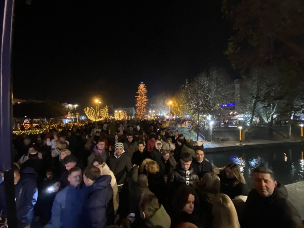 Από νωρίς οι τρικαλινοί/ες και οι επισκέπτες/τριες του Μύλου των Ξωτικών συνέρρεαν στην κεντρική πεζογέφυρα, γεμίζοντας ασφυκτικά τον χώρο εκατέρωθεν της γέφυρας.