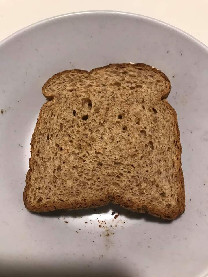 Αυτή είναι μια φέτα ψωμί βιολογική κιόλας, για τοστ, του εμπορίου, μάρκα δε λέμε δεν έχει σημασία..
