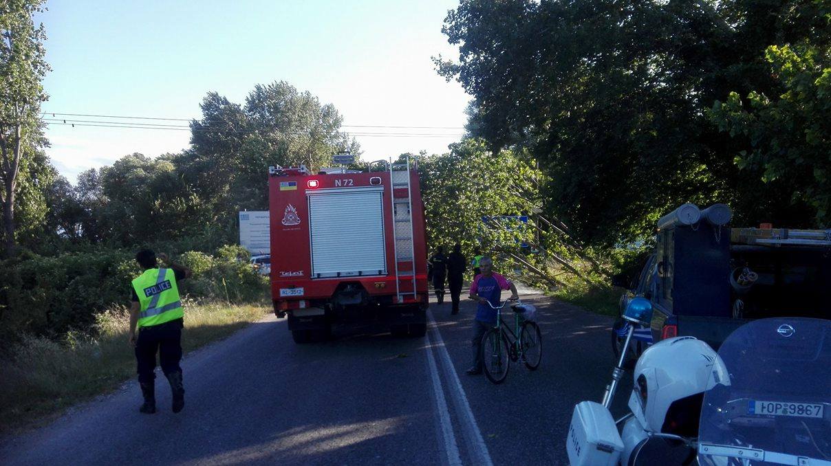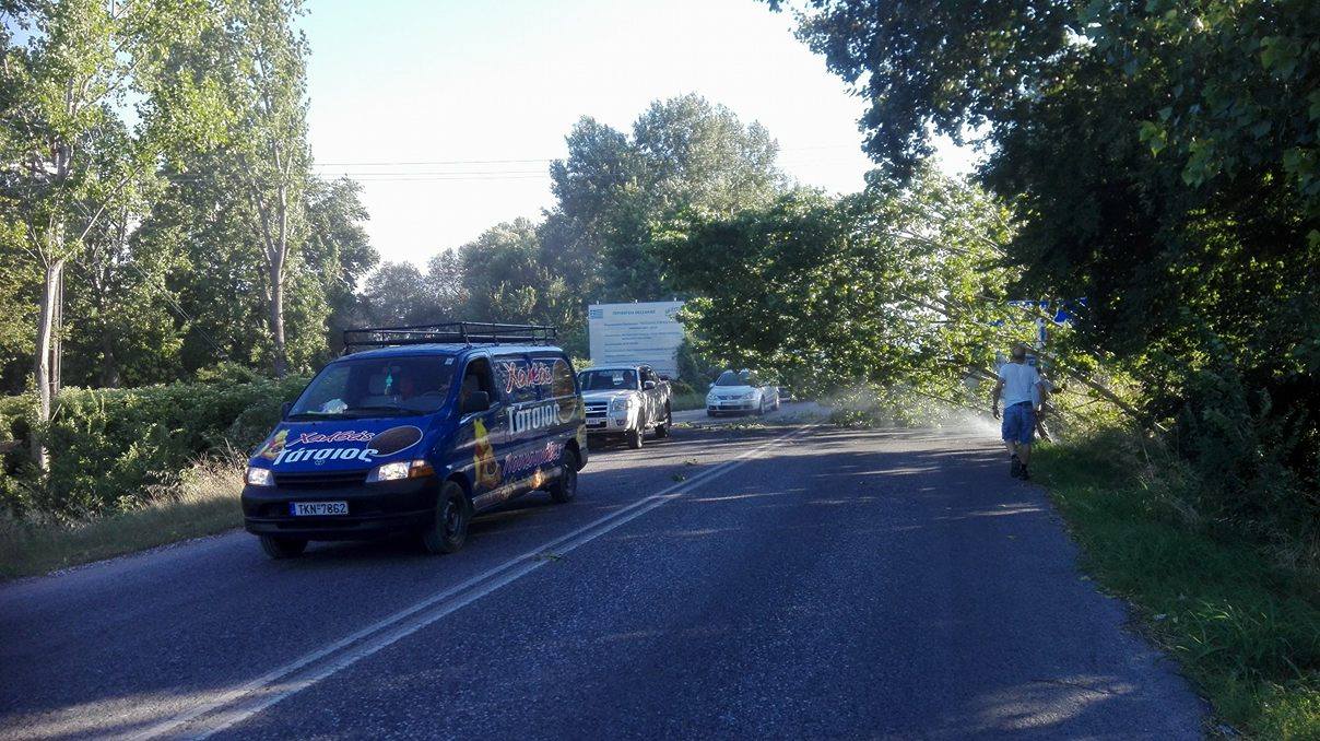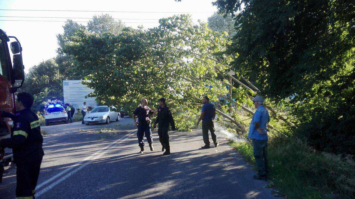 Πιο συγκεκριμένα η πτώση μια μεγάλης λεύκας στο οδόστρωμα έκλεισε αρχικά τον μισό δρόμο όπως πάμε προς Πύλη ενώ κατά την πτώση της έπεσε πάνω στα καλώδια της ΔΕΗ από τα οποία πιθανόν προκλήθηκε και μικρή πυρκαγιά που έσβησε αμέσως.