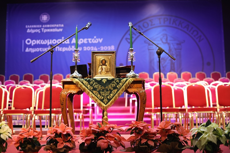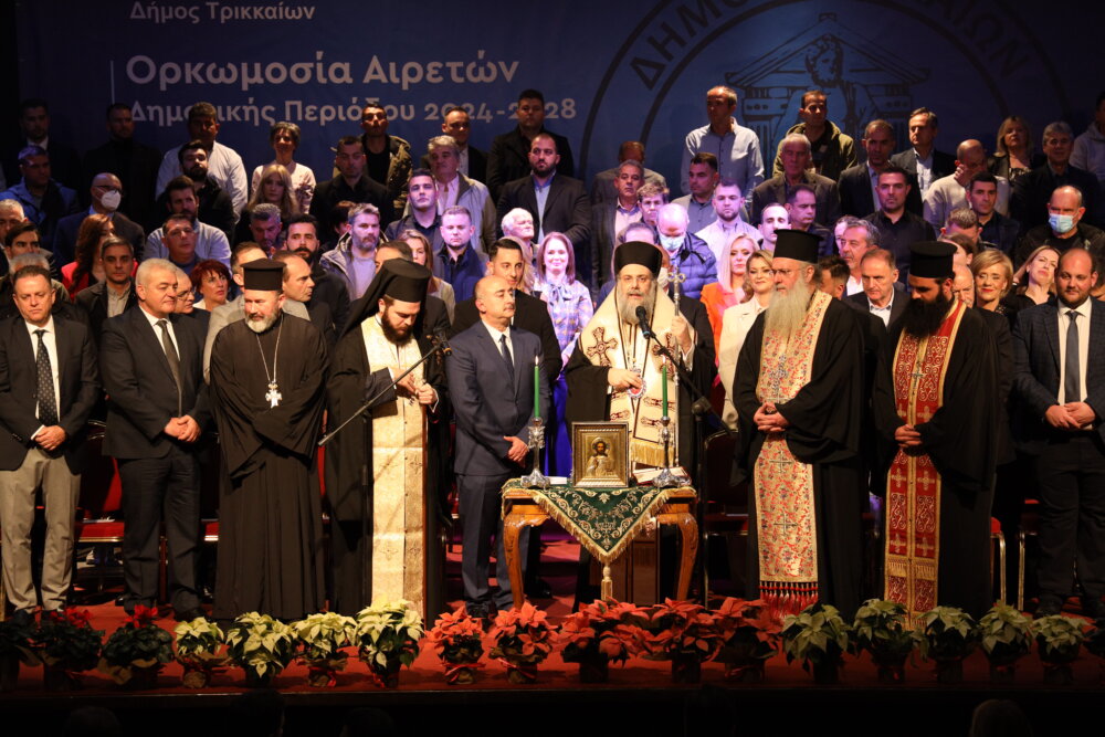 Η τελετή πραγματοποιήθηκε χοροστατούντος του Σεβασμιότατου Μητροπολίτη Τρίκκης, Γαρδικίου και Πύλης κ.κ. Χρυσόστομο, ο οποίος ξεπέρασε κάθε προηγούμενο υμνώντας τον Δημήτρη Παπαστεργίου, λες και ορκιζόταν αυτός (θα υπάρξει ξεχωριστό σχόλιο), ενώ σχεδόν ολόκληρη η παράταξη Λαϊκή Συσπείρωση καθώς και ο Στέφανος Βαβύλης ορκίστηκαν με πολιτικό όρκο.
