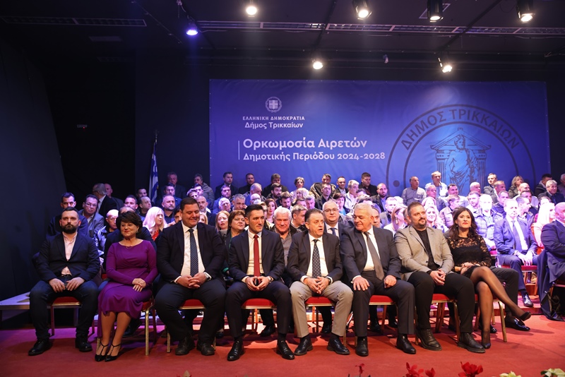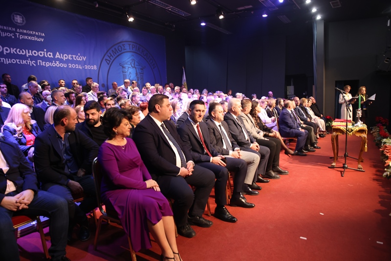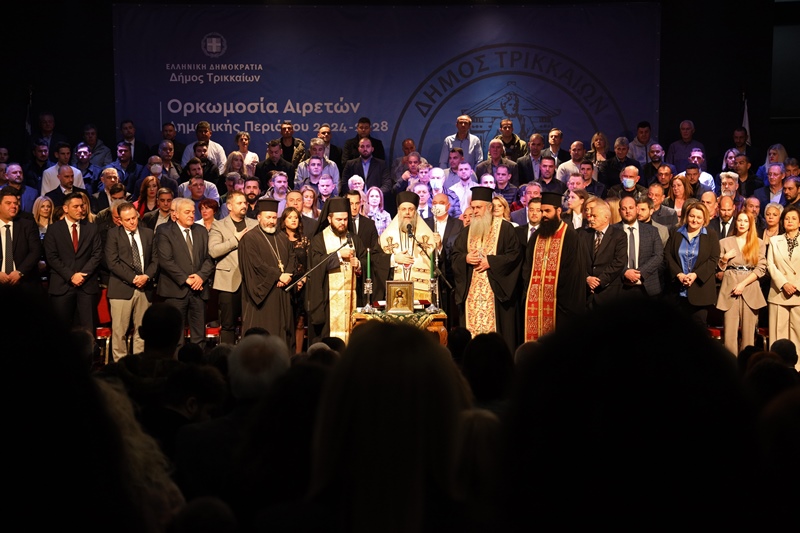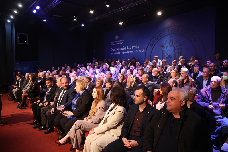 Ο κόσμος κατέκλυσε την αίθουσα (συγγενείς των εκλεγμένων οι περισσότεροι), μέσα και έξω από το Πνευματικό Κέντρο Δήμου Τρικκαίων «Αθανάσιος Τριγώνης» όπου ορκίστηκαν οι 142 από τους 144 συνολικά σύμβουλοι που ορκίστηκαν (απουσίες λόγω ιώσεων) έδωσαν τους νενομισμένους θρησκευτικό και πολιτικό όρκους.
