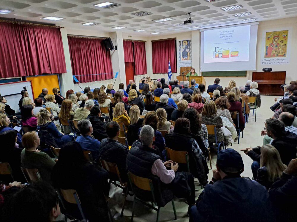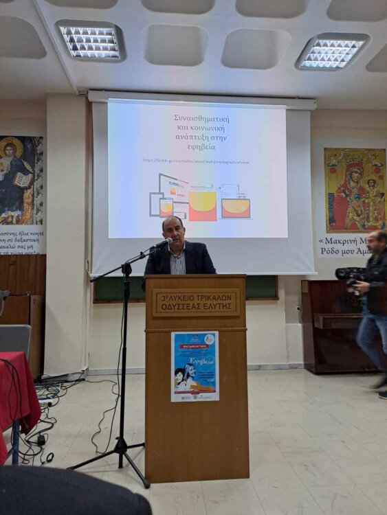 Πραγματοποιήθηκε με μεγάλη επιτυχία την Πέμπτη 9 Νοεμβρίου 2023 στην αίθουσα εκδηλώσεων του 3ου Λυκείου Τρικάλων «Οδυσσέας Ελύτης» η εναρκτήρια συνάντηση της Σχολής Γονέων της Διεύθυνσης Δευτεροβάθμιας Εκπαίδευσης Τρικάλων με πλήθος κόσμου και εισηγήτρια τη Δρ Χριστίνα Ρούση, Επίκουρη Καθηγήτρια Εκπαιδευτικής Ψυχολογίας του Παιδαγωγικού Τμήματος Ειδικής Αγωγής Πανεπιστημίου Θεσσαλίας με θέμα «Έφηβοι στο Σχολείο και στο Σπίτι: συνθέτοντας τα στοιχεία του πάζλ για την κατανόηση της συμπεριφοράς τους και την προαγωγή της αυτονομίας τους και της ψυχικής τους υγείας – (Οι  Dr. Jekyll και Mr. Hyde της Ζωής μας)».