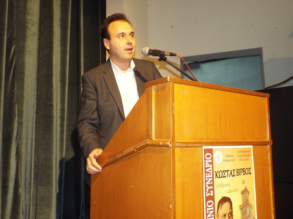 Στο γεμάτο Πνευματικό Κέντρο του Δήμου Τρικκαίων, η Περιφερειακή Διευθύντρια Εκπαίδευσης Θεσσαλίας κ. Ελένη Αναστασοπούλου, ήταν ιδιαιτέρως εμφατική ως προς τη συνεισφορά και προσφορά του μεγάλου στιχουργού στο λαϊκό μας τραγούδι, με αναφορές σε συγκεκριμένους στίχους. Ο εκπρόσωπος του Περιφερειάρχη Θεσσαλίας Κ. Αγοραστού, περιφερειακός σύμβουλος κ . Ντ. Μπάρδας, τόνισε ότι η Περιφέρεια θα βρίσκεται δίπλα στις προσπάθειες ανάδειξης του έργου του Κώστα Βίρβου. Οι πρόεδροι των Συλλόγων Δασκάλων και Νηπιαγωγών Τρικάλων και Καλαμπάκας, κ. Σερ. Ψαράς και Ντίνος, αντιστοίχως, στάθηκαν στην ουσία του συνεδρίου: στην ανάγκη, στίχοι – ποιήματα του Βίρβου, να ενταχθούν στα βιβλία του Δημοτικού Σχολείου.
