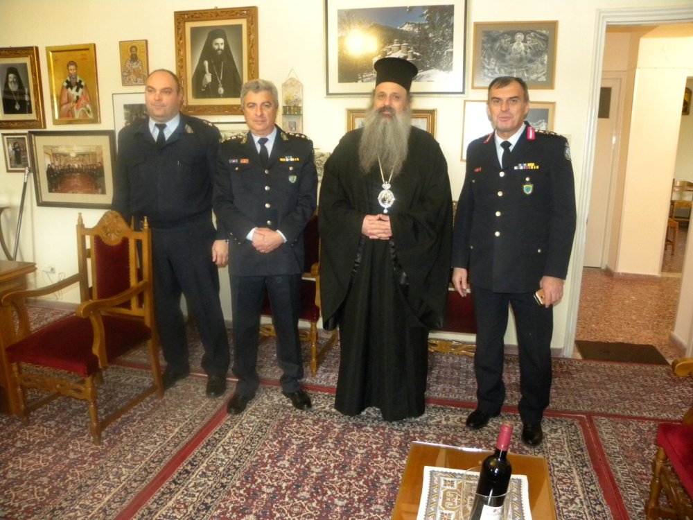 Οι λειτουργοί της Εκκλησίας, της τοπικής αυτοδιοίκησης και των στρατιωτικών Αρχών ευχήθηκαν στο Γενικό Περιφερειακό Αστυνομικό Διευθυντή Θεσσαλίας και το Διευθυντή Αστυνομίας Τρικάλων καλή επιτυχία στα νέα τους καθήκοντα, ενώ συζητήθηκαν διάφορα θέματα αμοιβαίου ενδιαφέροντος.