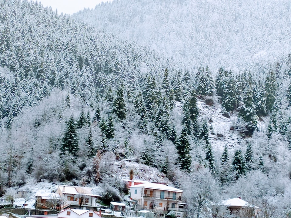 Στα λευκά από χθες βράδυ τα ορεινά των Τρικάλων