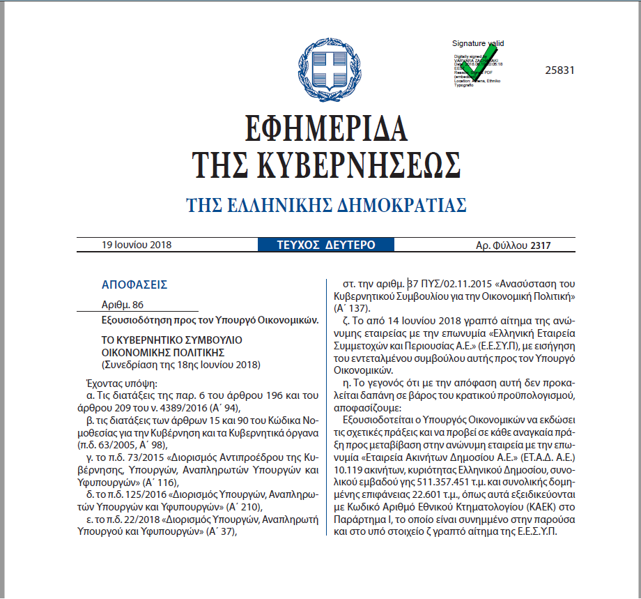 Στο ΦΕΚ λέει ότι τα ακίνητα μεταβιβάζονται στην Εταιρεία Ακινήτων του Δημοσίου. Αλλά η τελευταία (η οποία παλαιότερα λεγόταν Ελληνικά Τουριστικά Ακίνητα) είναι 100% θυγατρική της Ελληνικής Εταιρείας Συμμετοχών και Περιουσίας, ήτοι του Υπερταμείου.