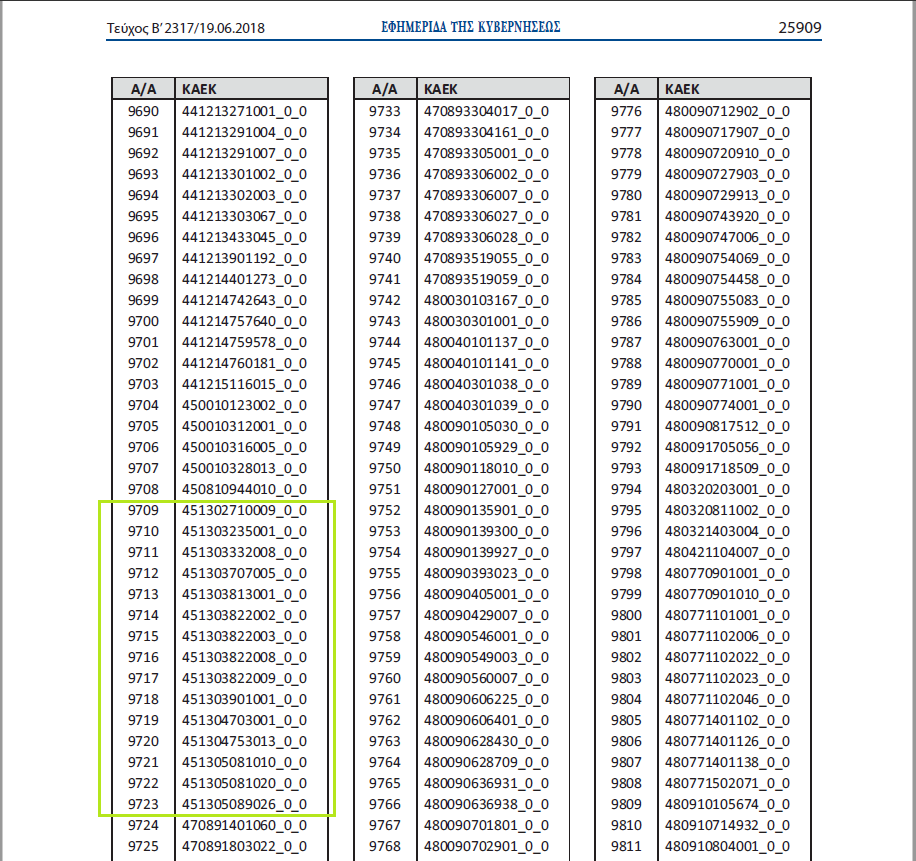 Ακολουθούν 83 σελίδες με ΚΑΕΚ ακινήτων.