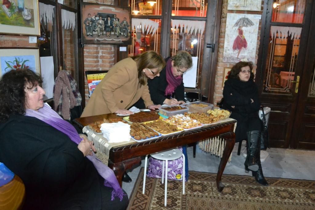 Μέσα σε κλίμα συγκίνησης για τους ανθρώπους που υποφέρουν, έγιναν οι απαραίτητες προσφωνήσεις, από την πρόεδρο των τρικαλινών ζωγράφων και την εκπρόσωπο της «Φλόγας» και η παρότρυνση στους παρόντες να ενισχύσουν, όπως μπορούν, αυτή την πρωτοβουλία. Στη συνέχεια ο χώρος πλημμύρισε από τη μουσική του δεξιοτέχνη Αντώνη Ντόντου, που μάγεψε με το σαξόφωνο τους παρισταμένους, μέσα κι έξω, και τα μέλη του Συλλόγου πρόσφεραν σε όλους ζεστό κρασί και διάφορα εδέσματα.