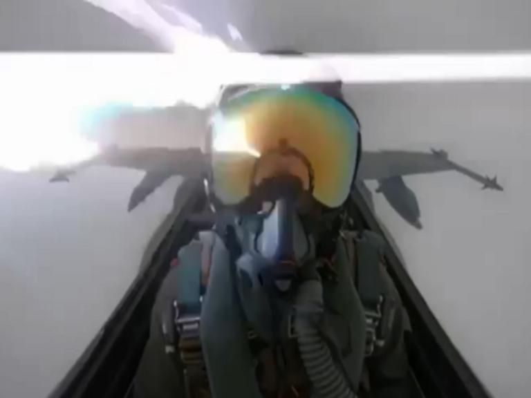 Στις εικόνες φαίνεται να κάνει κίνηση με το χέρι του προς το αυτί του, σε μια αυθόρμητη αντίδραση, με τις πληροφορίες να αναφέρουν πως αφότου χτύπησε ο κεραυνός, το μαχητικό υπέστη ζημιά, χωρίς να έχει διευκρινιστεί το εύρος της.
