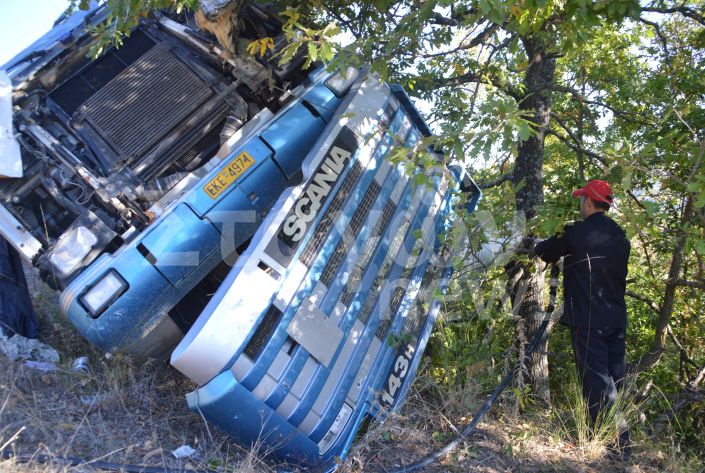 Νταλίκα(βυτιοφόρο) που μετέφερε ξύδι με προορισμό τη Καλαμπάκα, εξετράπη για άγνωστη αιτία της πορείας της με αποτέλεσμα να βγει εκτός δρόμου μετά από διαδοχικές “τούμπες”.